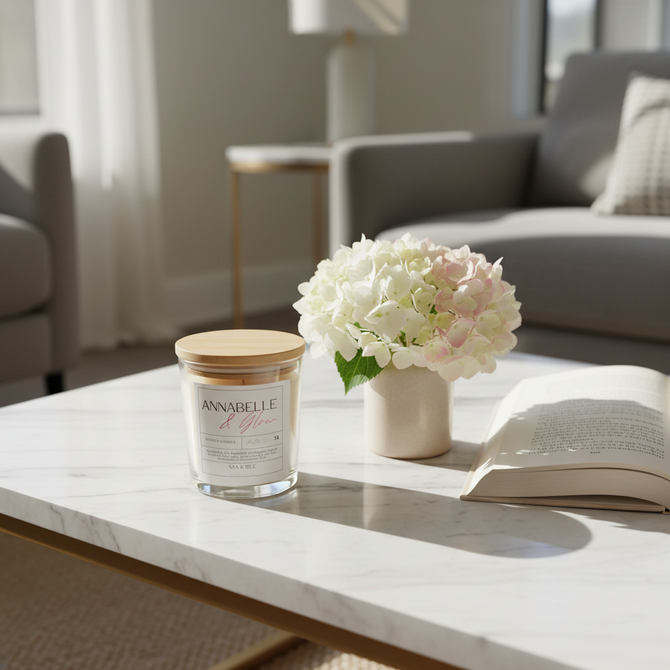 Inspired by the soft ivory hues and fresh elegance of the Annabelle Hydrangea, our Annabelle & Glow candle brings a touch of botanical serenity to any space. Each candle is hand-poured in Snohomish, WA, using our luxurious Coconut Apricot Wax Blend for a clean, slow burn and exceptional scent throw.