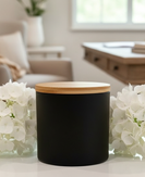 The marbled design inside a frosted glass vessel creates a one-of-a-kind pattern in every candle, diffusing light beautifully as it burns. A natural bamboo lid completes the look, blending sustainability with modern, boho-chic style.