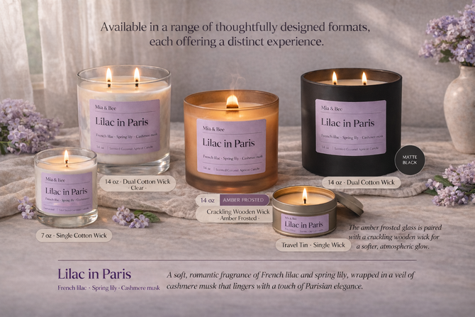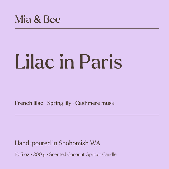 Soft lilac blossoms drift through the air, layered with delicate florals and a touch of fresh green stems. Light, romantic, and effortlessly refined—like a quiet walk through Paris in spring.