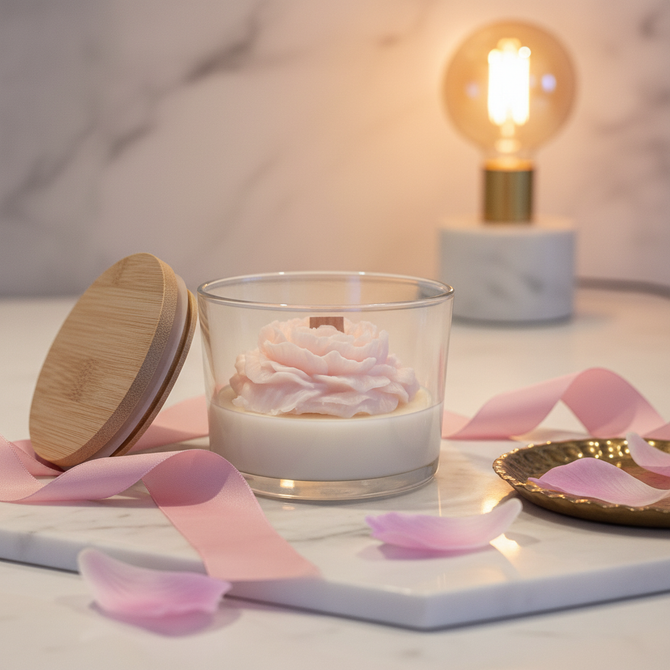 Set in a clear glass vessel, the candle feels light, elegant, and quietly luxurious — beautiful even before it’s lit. The fragrance opens bright and airy with fresh petals and soft greenery, blooms into a creamy white-floral heart inspired by magnolia in full bloom, and settles into a smooth, comforting base.
